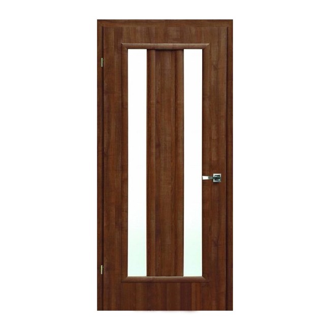 Дверная коробка производится из переклеенного массива, обклеенного МДФ с двух сторон. Облицовано декоративным покрытием. Межкомнатная дверь устойчива к деформации при перепадах влажности.