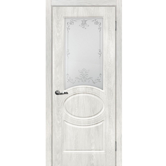 Дверное полотно Мариам Сиена-1 ПВХ шале Дуб жемчужный стекло белый сатинат серебро 2000х900 мм - современные межкомнатные двери.