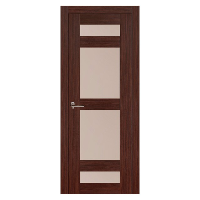 Межкомнатная дверь Европан Техно 2 венге 900х2000 мм облицована декоративным износостойким покрытием, имитирующим натуральное дерево. Данный современный материал экологически безвреден и в процессе эксплуатации не выделяет никаких вредных веществ. Преимущества такого покрытия очевидны: его сложно поцарапать, материал устойчив к стиранию, не меняет своей цветовой гаммы в процессе эксплуатации. Дверь, облицованная декоративным покрытием, требует не такого тщательного ухода как дверь, облицованная натуральным шпоном, при этом возможно использовать любые бытовые химические средства для ухода за изделием. К тому же, дверь, облицованная декоративным ламинатом, существенно дешевле, чем модели с натуральным шпоном.