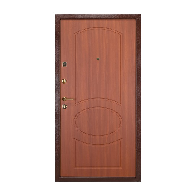Дверь входная металлическая Бульдорс 25 Б Лесной орех 2050*860 правая – гарантия высокой степени защиты при эстетичном внешнем виде. Объединение замков двух типов с сувальдным и цилиндровым механизмами дают гарантию безопасности Вашего дома, а многообразие вариантов внутренней отделки двери Лесной орех 2050*860 удовлетворят потребности даже самого требовательного клиента.