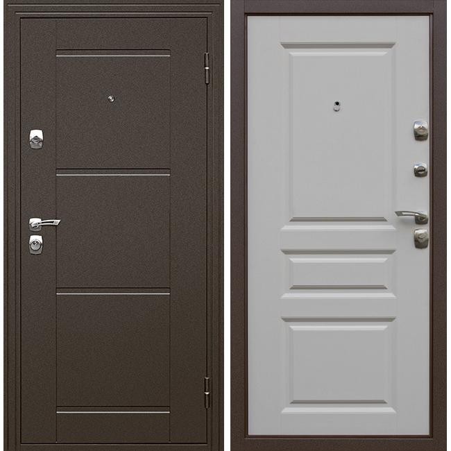 Дизайн и роскошный белый цвет внутренней фрезерованной панели из МДФ отлично сочетаются с различными интерьерными решениями современных тенденции дизайна большинства межкомнатных дверей и легко впишутся в любые интерьеры. Наружная отделка — металл, антивандальное, атмосферостойкое полимерно-порошковое напыление с выштамповкой. Никелированная фурнитура выгодно смотрится на глубоком коричневом цвете полотна, а также и на текстуре дерева.