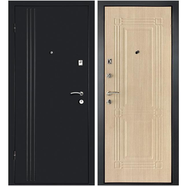 Дизайн и цвет внутренней панели отлично сочетаются с различными интерьерными решениями. Они повторяют современные тенденции дизайна большинства межкомнатных дверей и легко впишутся в любые интерьеры. В данной модели - это панель МДФ с фрезерованным геометрическим орнаментом в популярном цвете Беленый дуб. С внешней стороны дверь имеет антивандальное покрытие цвета графит и лаконичное оформление вертикальными полосами. Хромированная фурнитура выгодно смотрится на насыщенном черном цвете полотна, а также и на текстуре дерева.