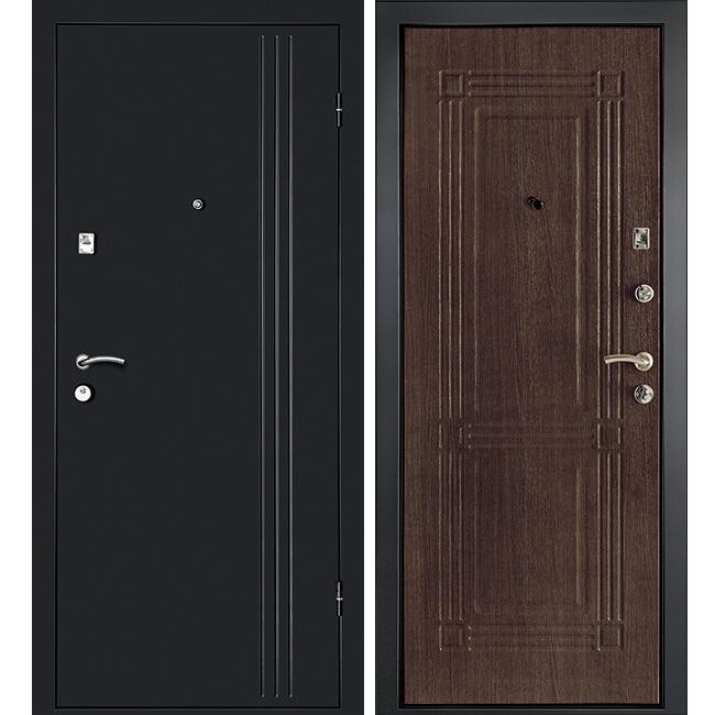 Дизайн и цвет внутренней панели отлично сочетаются с различными интерьерными решениями. Они повторяют современные тенденции дизайна большинства межкомнатных дверей и легко впишутся в любые интерьеры. В данной модели - это панель МДФ с фрезерованным геометрическим орнаментом в благородном цвете Венге. С внешней стороны дверь имеет антивандальное покрытие цвета графит и лаконичное оформление вертикальными полосами. Хромированная фурнитура выгодно смотрится на насыщенном черном цвете полотна, а также и на текстуре дерева.