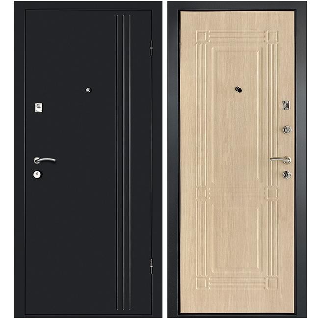 Дизайн и цвет внутренней панели отлично сочетаются с различными интерьерными решениями. Они повторяют современные тенденции дизайна большинства межкомнатных дверей и легко впишутся в любые интерьеры. В данной модели - это панель МДФ с фрезерованным геометрическим орнаментом в популярном цвете Беленый дуб. С внешней стороны дверь имеет антивандальное покрытие цвета графит и лаконичное оформление вертикальными полосами. Хромированная фурнитура выгодно смотрится на насыщенном черном цвете полотна, а также и на текстуре дерева.