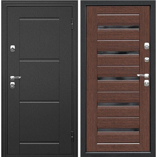 Дизайн и цвет Венге внутренней панели из МДФ отлично сочетаются с различными интерьерными решениями современных тенденции дизайна большинства межкомнатных дверей и легко впишутся в любые интерьеры. Наружная отделка — металл, антивандальное, атмосферостойкое полимерно-порошковое напыление с выштамповкой. Никелированная фурнитура выгодно смотрится на насыщенном черном цвете полотна, а также и на текстуре дерева.