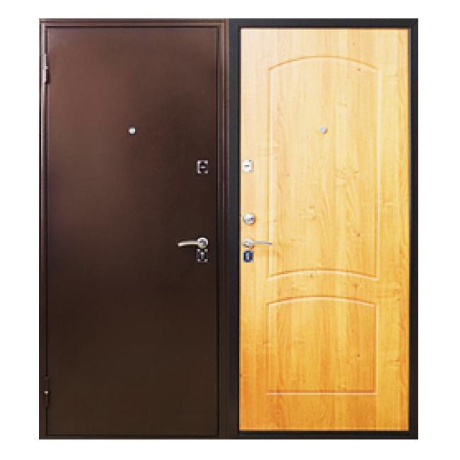 Входная металлическая дверь Меги 181 изготовлена из холоднокатаного стального листа. Внешняя сторона двери - цвет медь (порошковое покрытие), внутренняя сторона - цвет миланский орех из фрезерованного МДФ 8 мм, ламинированный пленкой ПВХ.