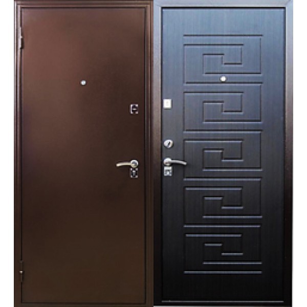 Входная металлическая дверь Меги 181 изготовлена из холоднокатаного стального листа. Внешняя сторона двери - цвет медь (порошковое покрытие), внутренняя сторона - цвет венге из фрезерованного МДФ 8 мм, ламинированный пленкой ПВХ.