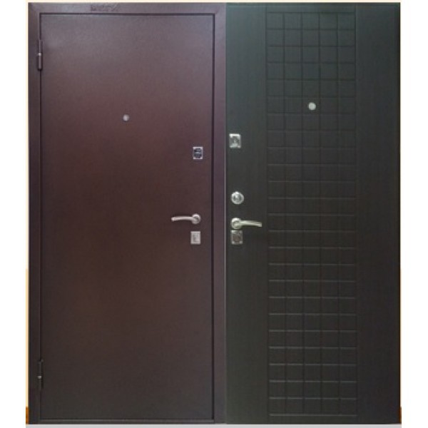 Входная металлическая дверь Меги 181 изготовлена из холоднокатаного стального листа. Внешняя сторона двери - цвет медь (порошковое покрытие), внутренняя сторона - цвет венге из фрезерованного МДФ 6 мм, ламинированный пленкой ПВХ.