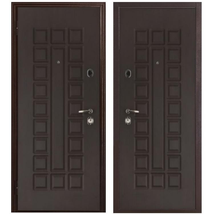 Входная металлическая дверь Меги 187 изготовлена из холоднокатаного стального листа. Внутренняя и внешняя панель из фрезерованного МДФ 6 мм, ламинированного пленкой ПВХ .