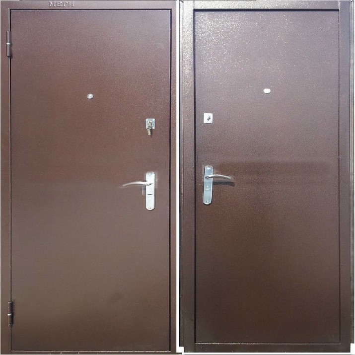 Входная металлическая дверь Меги 374 изготовлена из холоднокатаного стального листа. Внешняя сторона - металлическая цвет Антик Медь, внутренняя - металлическая цвет Антик Медь.