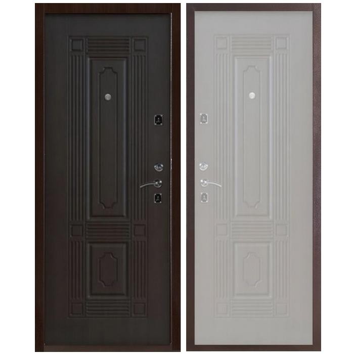 Входная металлическая дверь Меги 387 изготовлена из холоднокатаного стального листа. Внутренняя и внешняя панель из фрезерованного МДФ 8 мм, ламинированного пленкой ПВХ.