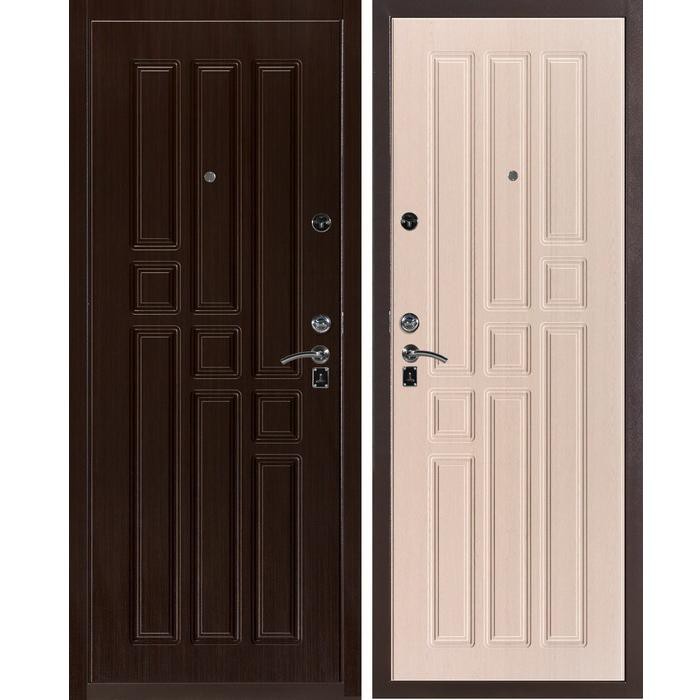 Входная металлическая дверь Меги 387 изготовлена из холоднокатаного стального листа. Внутренняя и внешняя панель из фрезерованного МДФ 8 мм, ламинированного пленкой ПВХ.