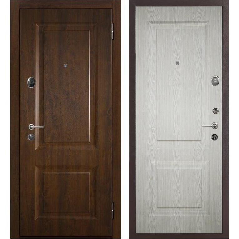 Входная металлическая дверь Меги 577 (модель 5064-4064) серии Купер Стандарт изготовлена из холоднокатаного стального листа. Внешняя сторона двери - фрезерованная плита МДФ 12 мм (рис. 4064) ламинированная термопленкой ПВХ Винорит цвета Темный дуб, внутренняя сторона - фрезерованная плита МДФ 12 мм (рис. 5064) ламинированная термопленкой ПВХ Винорит цвета Светлый дуб.