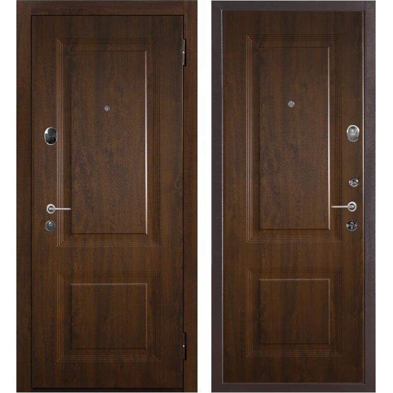 Входная металлическая дверь Меги 577 (модель 4064-4064) серии Купер Стандарт изготовлена из холоднокатаного стального листа. Внешняя и внутренняя сторона двери - фрезерованная МДФ 12 мм ламинированная термопленкой ПВХ Винорит цвета Темный дуб.
