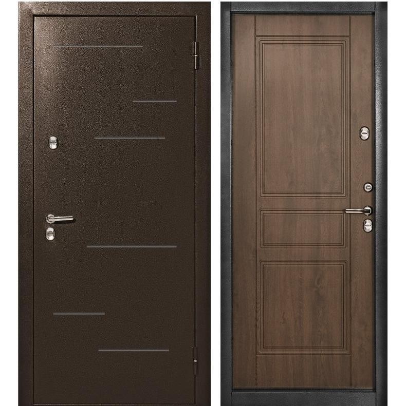 Входная металлическая дверь Меги 601 (модель 4010) серии Термо изготовлена из холоднокатаного стального листа. Внешняя сторона двери - порошковое покрытие цвета Медный антик с объемным декором, внутренняя сторона - из фрезерованного МДФ 8 мм рисунок 4010 с пленкой ПВХ Винорит, цвет Темный дуб.