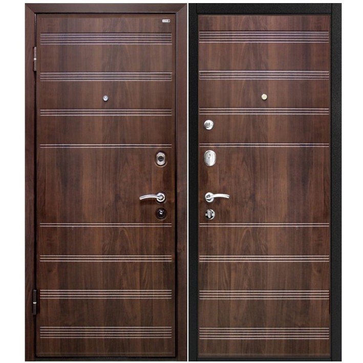 С каждой стороны дверь обшита прочными щитами, с атмосфероустойчивым покрытием VINORIT, и с надежным трубчатым уплотнителем. Толщина металла составляет 1,2 мм. В сумме это все и обеспечивает высокую прочность и долговечность входной двери.