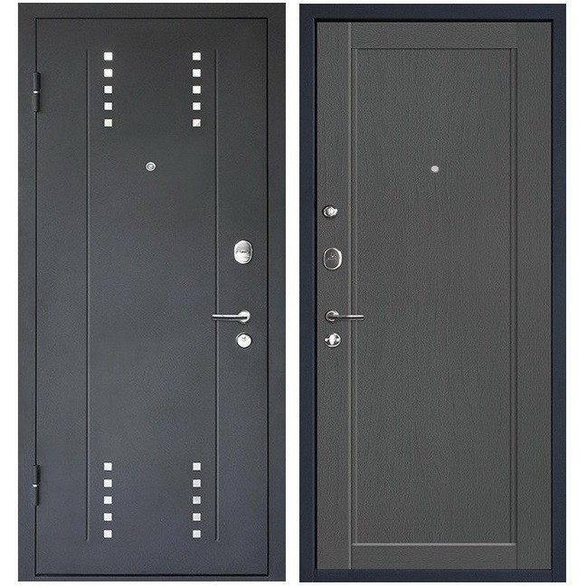 Благодаря своим техническим характеристикам, модель является выгодным предложением на рынке входных дверей в своем классе. Эта дверь обеспечит Вашу безопасность и украсит прихожую. Она оборудована двумя замками разных типов, что делает ее устойчивой ко всем возможным видам взлома. Нижний замок, являющийся основным, имеет четвертую категорию взломостойкости. Он снабжен цилиндровым механизмом с тремя ригелями. Его конструкция включает в себя броненакладку, служащую защитой от механических повреждений цилиндра. Верхний сувальдный замок 2-й категории рекомендуется использовать как дополнительный во время длительного отсутствия, а задвижку — в ночное время.