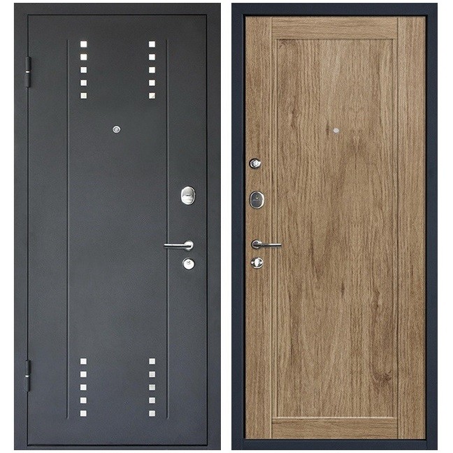 Благодаря своим техническим характеристикам, модель является выгодным предложением на рынке входных дверей в своем классе. Эта дверь обеспечит Вашу безопасность и украсит прихожую. Она оборудована двумя замками разных типов, что делает ее устойчивой ко всем возможным видам взлома. Нижний замок, являющийся основным, имеет четвертую категорию взломостойкости. Он снабжен цилиндровым механизмом с тремя ригелями. Его конструкция включает в себя броненакладку, служащую защитой от механических повреждений цилиндра. Верхний сувальдный замок 2-й категории рекомендуется использовать как дополнительный во время длительного отсутствия, а задвижку — в ночное время.