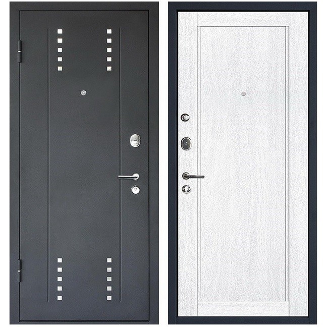 Благодаря своим техническим характеристикам, модель является выгодным предложением на рынке входных дверей в своем классе. Эта дверь обеспечит Вашу безопасность и украсит прихожую. Она оборудована двумя замками разных типов, что делает ее устойчивой ко всем возможным видам взлома. Нижний замок, являющийся основным, имеет четвертую категорию взломостойкости. Он снабжен цилиндровым механизмом с тремя ригелями. Его конструкция включает в себя броненакладку, служащую защитой от механических повреждений цилиндра. Верхний сувальдный замок 2-й категории рекомендуется использовать как дополнительный во время длительного отсутствия, а задвижку — в ночное время.