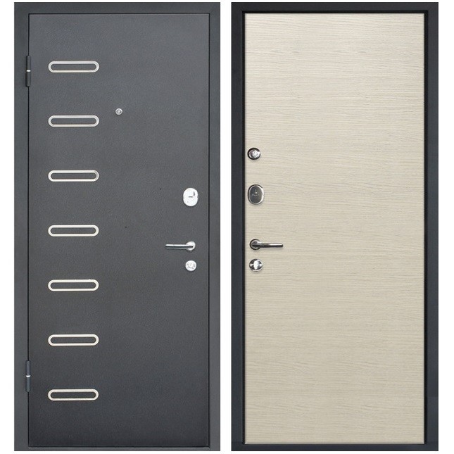 Благодаря своим техническим характеристикам, модель является выгодным предложением на рынке входных дверей в своем классе. Эта дверь обеспечит Вашу безопасность и украсит прихожую. Она оборудована двумя замками разных типов, что делает ее устойчивой ко всем возможным видам взлома. Нижний замок, являющийся основным, имеет четвертую категорию взломостойкости. Он снабжен цилиндровым механизмом с тремя ригелями. Его конструкция включает в себя броненакладку, служащую защитой от механических повреждений цилиндра. Верхний сувальдный замок 2-й категории рекомендуется использовать как дополнительный во время длительного отсутствия, а задвижку — в ночное время.