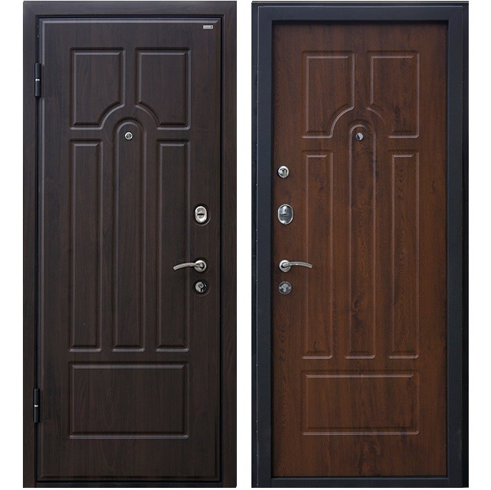 Эта дверь обеспечит Вашу безопасность и украсит прихожую. Она оборудована двумя замками разных типов, что делает ее устойчивой ко всем возможным видам взлома. Нижний замок, являющийся основным, имеет четвертую категорию взломостойкости. Он снабжен цилиндровым механизмом с тремя ригелями. Его конструкция включает в себя броненакладку, служащую защитой от механических повреждений цилиндра. Верхний сувальдный замок 2-й категории рекомендуется использовать как дополнительный во время длительного отсутствия, а задвижку — в ночное время.
