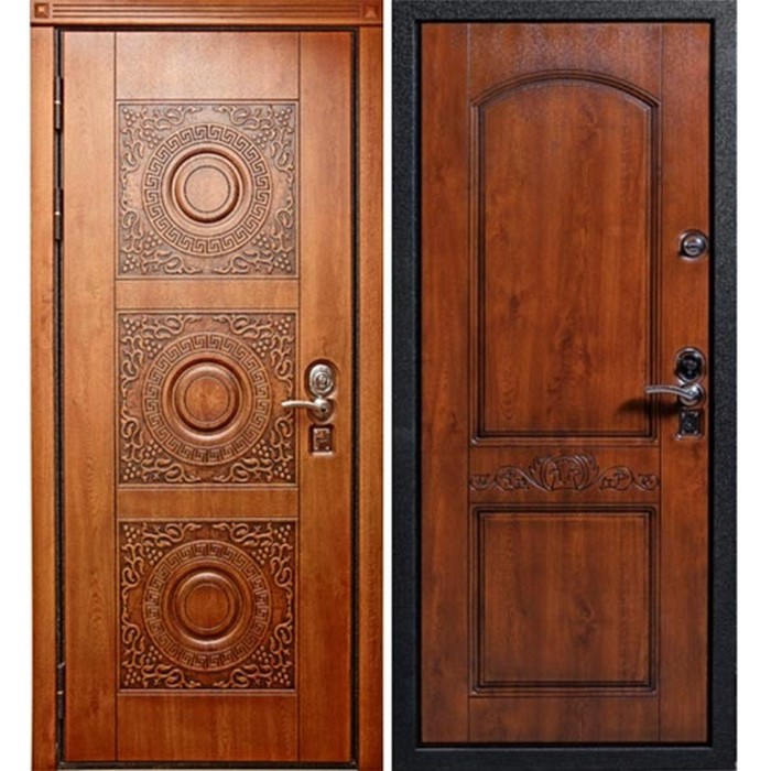 Могут ли прочные и тяжелые металлические двери быть при этом стильными и обладать аккуратным внешним видом? Несомненно, могут, и модель ЮрСталь Милано — прекрасное тому подтверждение. Эта цельногнутая входная дверь весом более 90 кг и толщиной полотна более 90 мм отделана высококачественной влагостойкой древесиной (панели МДФ 16 мм). Древесина, в свою очередь, покрыта материалом Vinorit, патиной (специальной пленкой) и лаком. С таким покрытием дверь сохранит свои превосходные внешние характеристики в течение многих лет, даже будучи установленной на улицу. Цвет с обеих сторон дверного полотна одинаковый — золотистый дуб.
