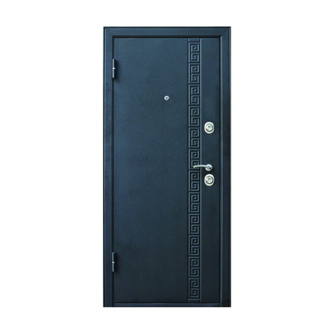 Полотно двери Дверной континент Эллада 960*2060 мм левая состоит из двух стальных листов, усиленных изнутри четырьмя ребрами жесткости, и 12-миллиметровой МДФ-панели цвета венге, закрепленной с внутренней стороны полотна. Герметичность закрывания двери обеспечивают два контура уплотнения и подшипниковая (2 петли) система навеса полотна. Внутреннее пространство полотна и коробки заполнено экструдированным пенополистиролом, обеспечивающим высокую тепло- и шумоизоляцию.