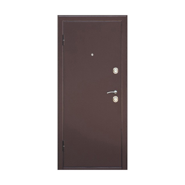 Полотно двери Дверной континент Интерио Светлый орех 860*2060 мм левая состоит из двух стальных листов, усиленных изнутри четырьмя ребрами жесткости, и 12-миллиметровой МДФ-панели цвета темный орех, закрепленной с внутренней стороны полотна. Герметичность закрывания двери Интерио Светлый орех 860*2060 обеспечивают два контура уплотнения и подшипниковая (2 петли) система навеса полотна. Внутреннее пространство полотна и коробки заполнено экструдированным пенополистиролом, обеспечивающим высокую тепло- и шумоизоляцию.