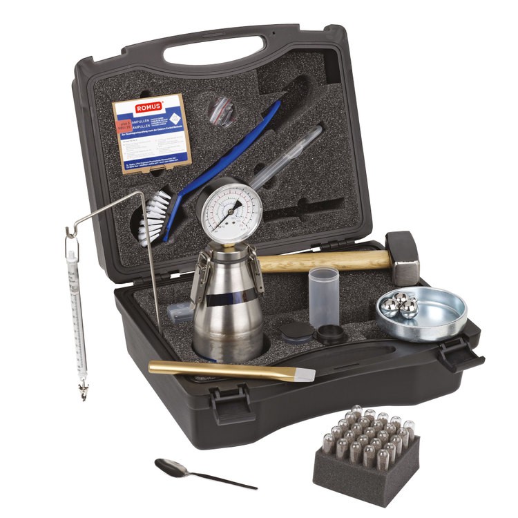 Мини-лаборатория Romus ССМ2 93265 является набором высокоточных инструментов, предназначенным для точного определения остаточной влажности строительных оснований. В основе принципа работы лежат химические реакции, поэтому от работника требуется соблюдение правил элементарных безопасности при проведении измерений. В комплект мини-лаборатории Romus CCM2 входит: чемоданчик, весы, набор инструмента для проведения измерений, стальные шарики, ампулы карбида кальция, емкость с манометром и ампулы с водой.