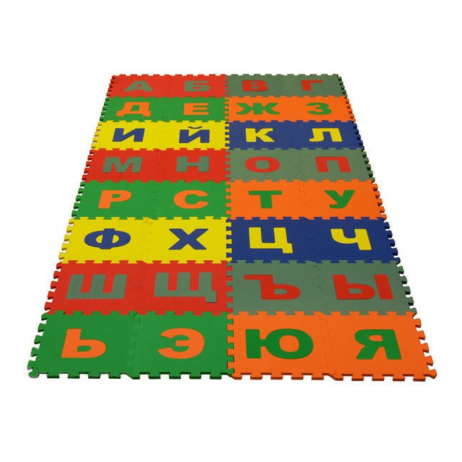 Мягкий пол "Русский алфавит" идеально подходит для детских комнат в домах и в различных детских учреждениях, так как является теплым, мягким и экологически чистым. Покрытие представляет собой плитки на основе EVA (этиленвинилацетат - абсолютно безопасный гипоаллергенный материал) с зацепами "ласточкин хвост" различных размеров, толщины, внешнего оформления, фактуры поверхности.