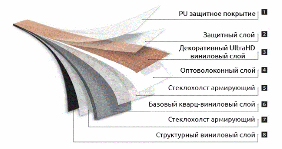 FineFloor является экологически чистым и практически инертным материалом. Гигиеническая безопасность FineFloor подтверждается сертификатами государственных санитарных служб. В состав кварц-виниловых полов входит кварцевый песок (несёт основную механическую нагрузку), с двух сторон обтянут стеклохолстами - это обеспечивает прочность на разрыв и гибкость материала. Основной слой защищает покрытие от истирания, предотвращает развитие бактерий. Полиуретановое покрытие придает дополнительную защиту от самых тяжелых пятен и абразивного износа.