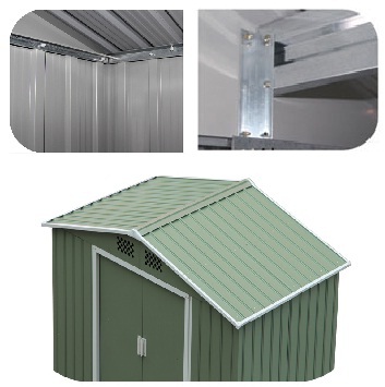 Профили каркаса стен и потолка хозблока Greenstorage Арчер изготовлены из оцинкованной стали толщиной 0,45 мм. Стены и кровля толщиной 0,28 мм собираются из глубоко профилированного оцинкованного и покрашенного несколькими слоями в горячем растворе стального листа. Изделие не требует в течение всего срока службы дополнительного ремонта или дополнительной окраски. Материал, который использован в изготовлении изделия, не боится уличной эксплуатации и стоек к климатическим перепадам.