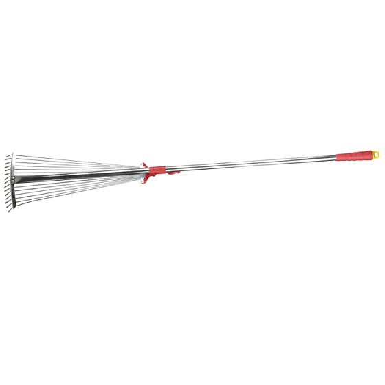 Зубцы грабель изготовлены из высококачественной стальной оцинкованной проволоки диаметром 3 мм. Механизм фиксации зубцов позволяет регулировать ширину рабочей части в диапазоне от 17 до 66 см. Ручка фиксатора изготовлена из нейлона, армированного фибергласом, что гарантирует продолжительный срок службы изделия.