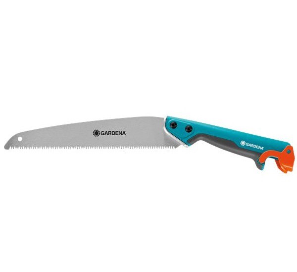 Садовая пила Gardena 300 РР имеет длину полотна 300 мм и подходит для различных целей - в зависимости от Ваших задач. Пила удобно лежит в руке, облегчая процесс работы. Практичная функция: просто зафиксируйте пилу с телескопической рукояткой combisystem - для удобной работы на высоте до 5 метров.Твердое хромрованоезащищает лезвие от коррозии и ржавчины. Закаленные зубья с тройной заточкой обеспечивает исключительную остроту и чистоту среза. Садовая пила не соскальзывает даже при движении на себя и снабжена ушком для петли, а также чехлом для лезвия, что обеспечивает безопасное хранение. На соединение пилы Gardena с рукояткой combisystem гарантия составляет 25 лет.