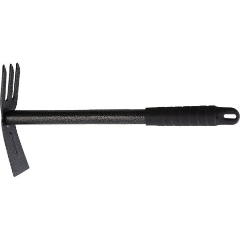 Мотыжка FIT с ручкой МК-3-1 цельнометаллическая 76853 - садовый инструмент для прополки, сбора мусора и рыхления почвы. Двухсторонняя рабочая часть, состоит из грабель с тремя зубьями и мотыги, имеющей форму трапеции. Мотыжка помогает сажать и ухаживать за растениями. Инструмент изготовлен из углеродистой стали, что гарантирует его надежность и долгий срок службы.