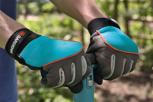 Перчатки рабочие Gardena предназначены для работы с инструментами и техникой с мотором. Инновационное покрытие на пальцах гарантирует нескользящий захват. Ударопоглощающие подкладки на ладонях обеспечивают особый комфорт, снижая воздействие на руки механических и моторизированных садовых инструментов.