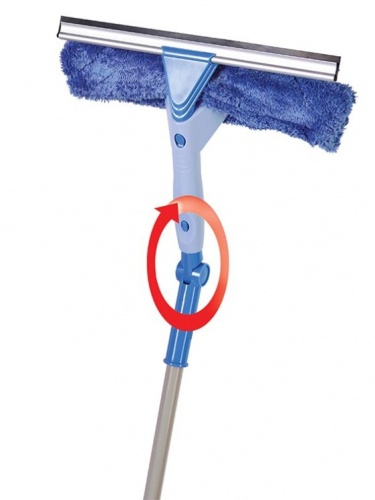 Щетка оборудована удобной телескопической ручкой, позволяющей мыть окна на любой высоте. Длина черенка регулируется от 75 до 140 см. А гибкий поворотный шарнир с фиксатором на ручке устанавливает щетку под любым необходимым углом, помогая добраться до самых труднодоступных мест.