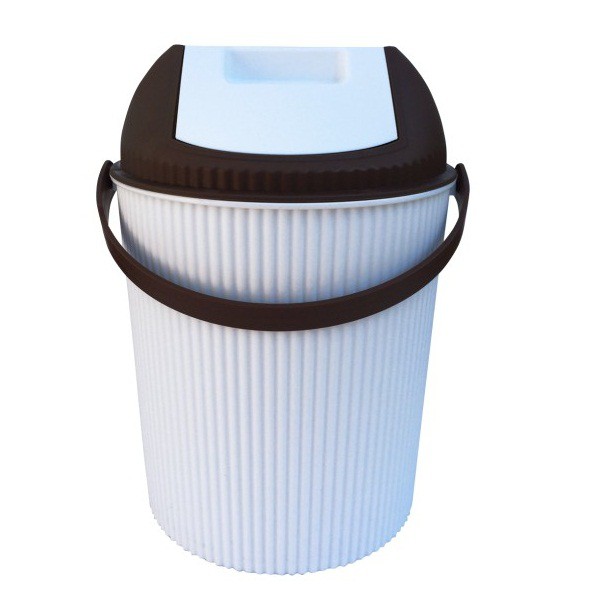 Бак для мусора оснащен закрывающейся крышкой с подвижной верней частью. Надавив на верхнюю стенку крышки, вы положите мусор, не снимая крышку полностью. Также имеется ручка, благодаря которой удобно переносить.