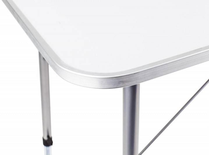 Высоту стола можно отрегулировать за счет телескопических ножек. Минимальная высота составляет 50 см и удобна для детей. Ножки оснащены защитными пластиковыми наконечниками. Каждая ножка стола регулируется инивидуально, благодаря чему его можно ровно расположить на любой поверхности.