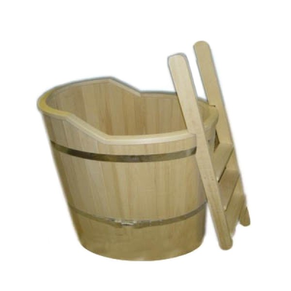 Купель овальной формы, что отличает её хорошей мобильностью, можно поставить в небольшой баньке, и рассчитана на одного человека человека. В комплект входит одна лесенка и скамья. На дне купели предусмотрен слив в виде пробки выточеный из дерева.