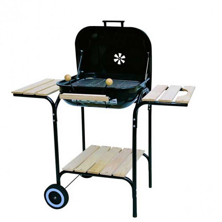 Green Glade ASK21 имеет четыре устойчивые ножки, две из которых снабжены колесиками. Благодаря этому устройство легко можно передвигать с места на место. Для удобства готовки гриль снабжен сразу тремя деревянными полками. Теперь под рукой всегда можно разместить специи и соусы, для заправки блюд. А нижняя полочка прекрасно подойдет для дополнительных хозяйственных аксессуаров или хранения угля.