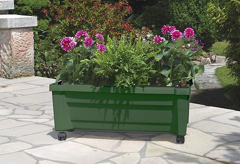 Ящик для растений Калипсо зеленого цвета от компании KHW отличный способ украшения загородного участка. Модель прямоугольной формы на практичных колесиках, ее удобно передвигать в любую точку сада. Также есть система орошения объемом на 8 литров. Достаточно просто добавить воды и можно не переживать, что цветы засохнут до вашего следующего приезда. Объем клумбы составляет 42 л.