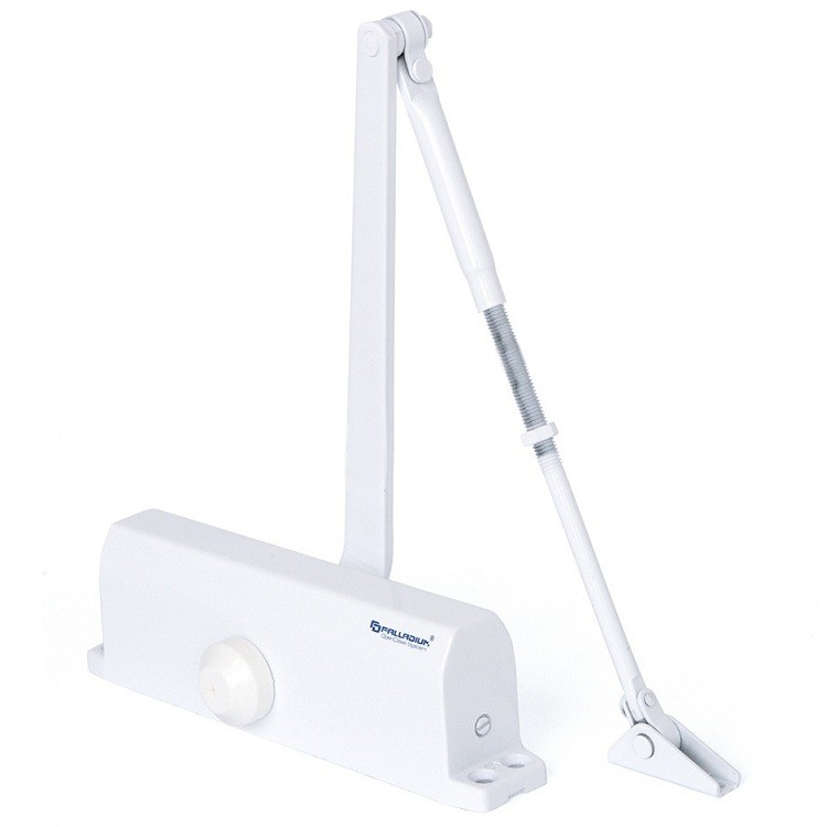 Доводчик дверной Palladium 1060 устанавливается на двери, имеющие размеры дверного полотна 1000х2100 мм и массу 45-60 кг. Служит для плавного автоматического закрывания дверей офисных и жилых помещений. Это довольно простая модель (есть лишь базовые регулировки), зато отличается надежностью и доступной стоимостью.