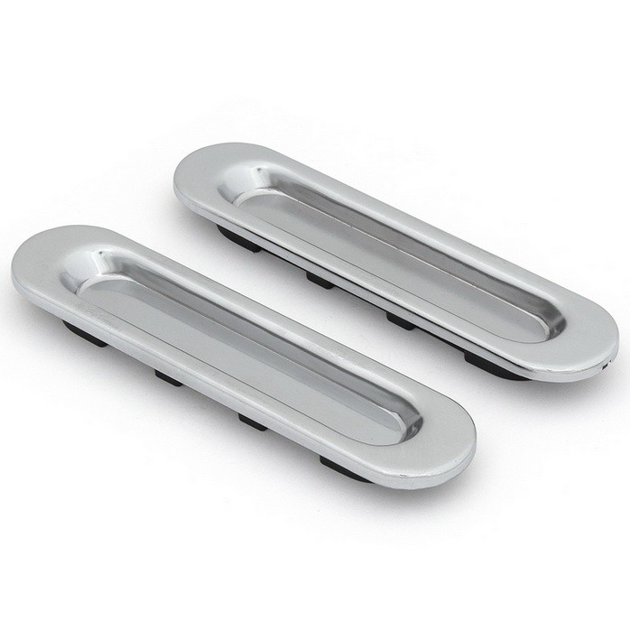 Для раздвижных дверей предназначены специальные ручки. Стандартные модели не подходят для подобных конструкций, так как выступающие части фурнитуры просто мешают процессу закрывания дверей. Ручки для раздвижных дверей устанавливаются в углубления в дверных створках и не выходят за ее контур. Такая ручка обычно выглядит как врезная накладка-лодочка. Чтобы открыть дверь, нужно ухватиться пальцами за специальную выемку и потянуть створку в сторону.