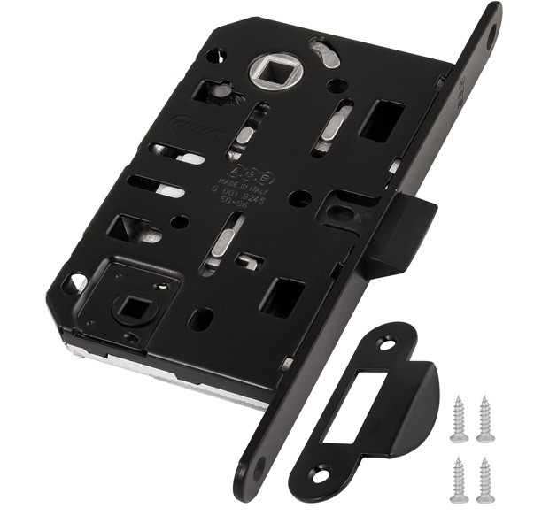 Замок межкомнатный AGB Mediana Evolution WC B01102 черный - замок для межкомнатных дверей с притвором и без него, с центральным язычком из полиамида, который обеспечивает невероятную тишину закрывания, сохраняя при этом надежность и прочность всех замков AGB.