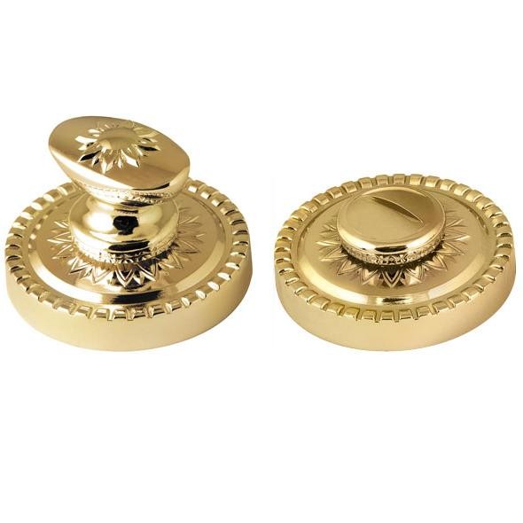 Armadillo WC-BOLT BK6/CL Gold-24 — поворотная ручка-фиксатор на круглом основании предназначена для установки на межкомнатные двери. Прекрасно дополнит эксклюзивное решение от Armadillo серии Classic. Единый стиль комплектующих создает гармоничный и неповторимый ансамбль в оформлении интерьера.