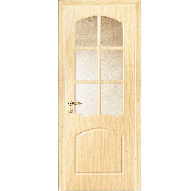 Каркас состоит из сращенного бруса хвойных пород дерева. Пустоты в полотнах заполняются пористым наполнителем, что способствует повышению прочности конструкции, хорошей звукоизоляции. Данная технология гарантирует устойчивость к перепадам температур - стоевые не ведет. МДФ - материал прочный и экологически безопасный. Финишная отделка - пленка ПВХ немецкого производства.