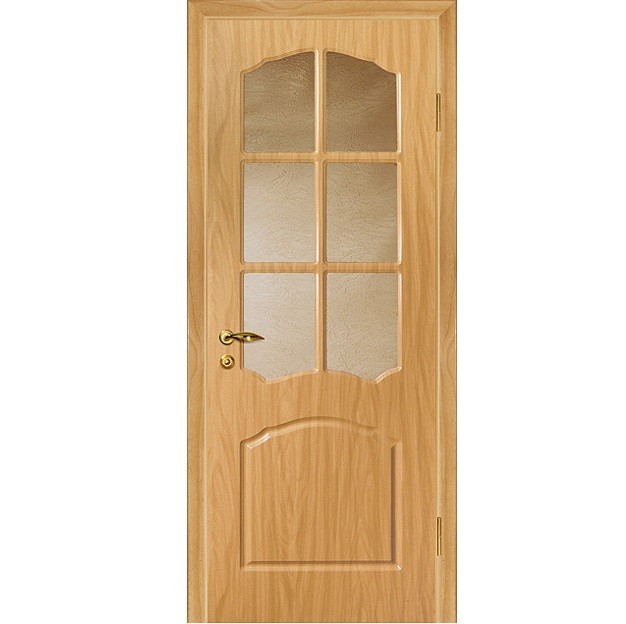 Каркас состоит из сращенного бруса хвойных пород дерева. Пустоты в полотнах заполняются пористым наполнителем, что способствует повышению прочности конструкции, хорошей звукоизоляции. Данная технология гарантирует устойчивость к перепадам температур - стоевые не ведет. МДФ - материал прочный и экологически безопасный. Финишная отделка - пленка ПВХ немецкого производства.