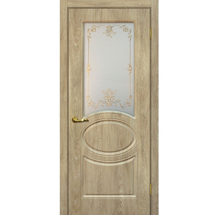 Дверное полотно Мариам Сиена-1 ПВХ шале Дуб песочный стекло белый сатинат золото 2000х800 мм - современные межкомнатные двери.