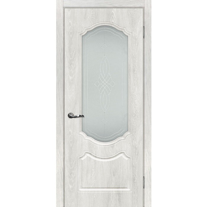 Дверное полотно Мариам Сиена-2 ПВХ шале Дуб жемчужный стекло белый сатинат серебро 2000х800 мм - современные межкомнатные двери.